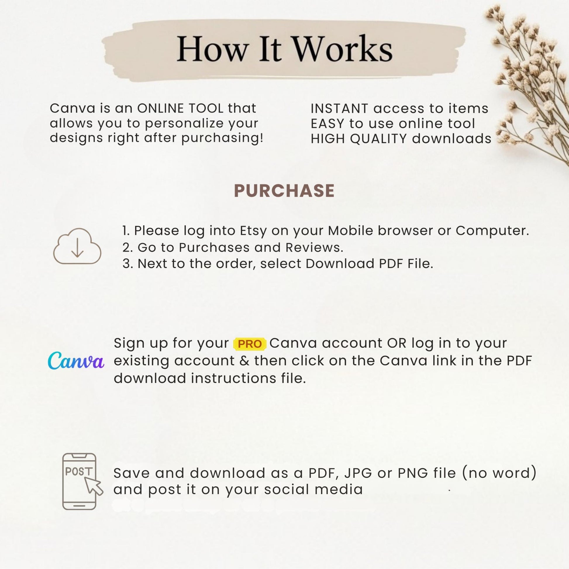 ⚠️ IMPORTANT: A Canva Pro subscription is required. These templates were created with premium, high-end elements and features only available in Canva Pro to ensure a superior and exclusive design quality.