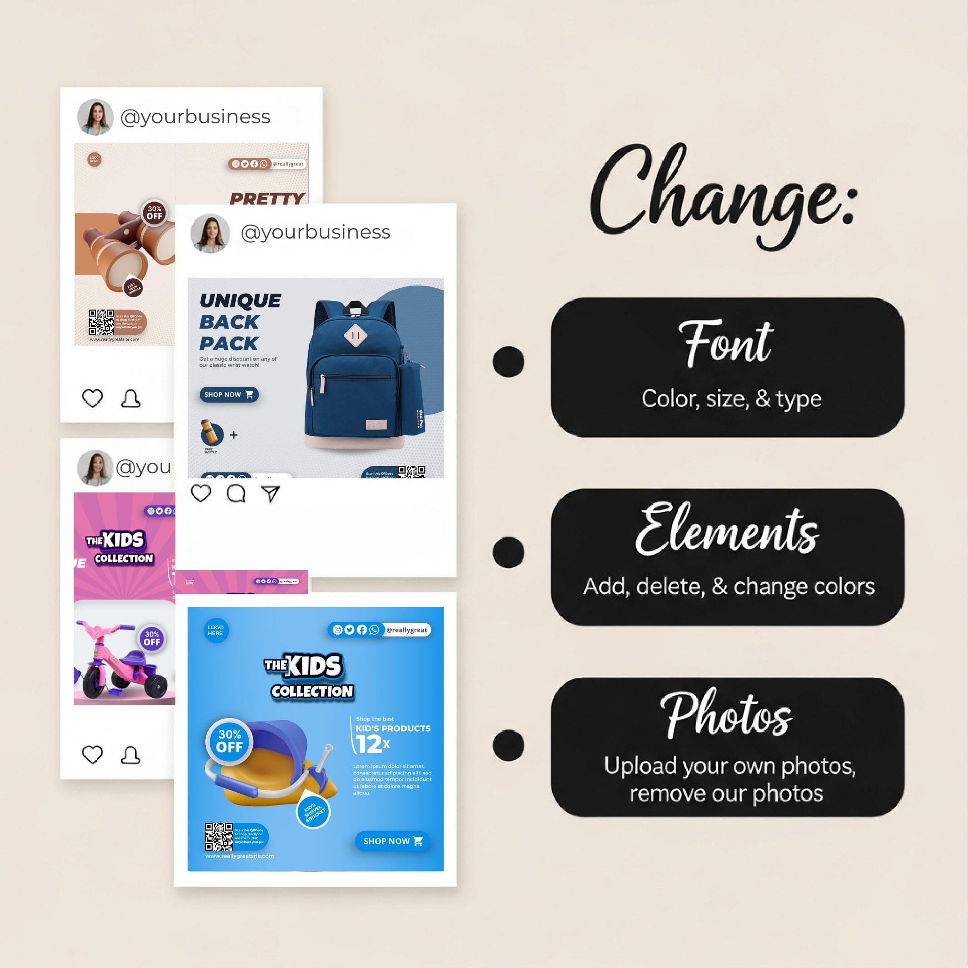 Children's Boutiques & Online Stores: Showcase your products with a polished, professional aesthetic.